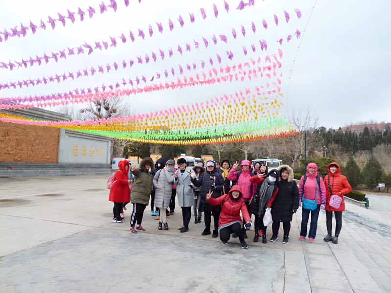 迎著吹面寒風,聞著新鮮醉人的泥土氣息,鳴環女神們一路歡歌笑語,盡情的釋放,盡情的歌唱。在王導游細心領隊下,我們上午游覽南山宗教文化園(參拜世界青銅坐佛之最——【南山大佛】,瀏覽功德堂、萬佛殿、佛教藝術博物館、南山禪寺、南山道院、香水庵);下午乘坐景區電瓶車游覽中華歷史文化園(參觀藥師玉佛殿、唐宋元明清文化區、財富大殿),參觀南山教育區、住宅區、工業區等。