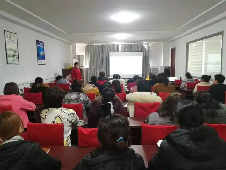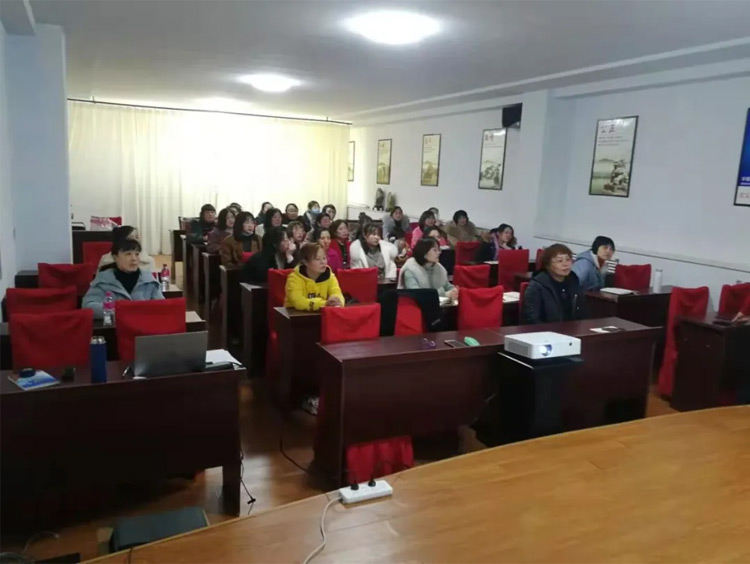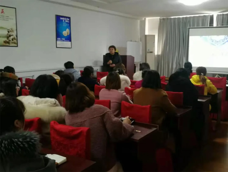 上午九點三十分,鳴環農牧全體女性職工于二樓大會議室集合,由鳴環農牧副總經理李淑青及鳴康動物醫院院長王永波給全體女同志授課。