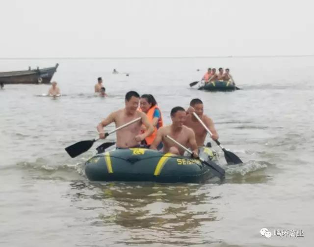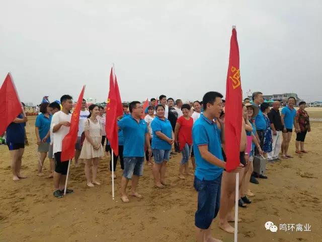 2017年8月19日下午,鳴環禽業在牟平區養馬島海水浴場組織沙灘拓展活動,來自種禽生產部、孵化廠、蓬萊分社、鳴達合作社、鳴康動物醫院及合作社各部門的50多名選手參加了此次活動。比賽項目有皮劃艇比賽、“三人四足”等,進一步激發了員工的團隊協作精神。
